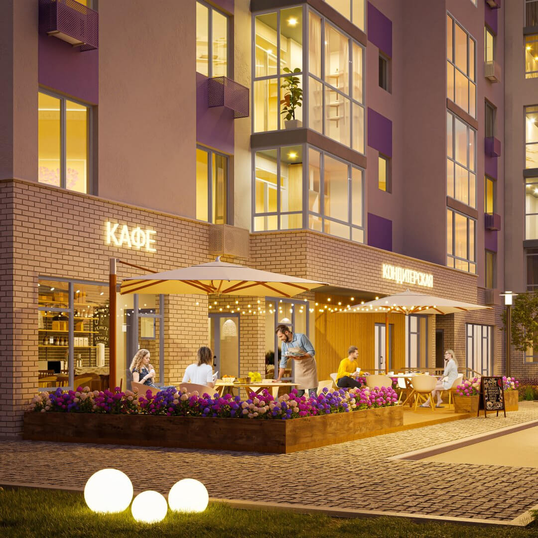 Одной из важных особенностей комплекса является наличие встроенных коммерческих помещений на первом этаже здания. Здесь могут разместиться уютные кофейни, продуктовые магазины, аптеки и другие объекты торговли и услуг, что делает повседневную жизнь ещё удобнее и комфортнее.
